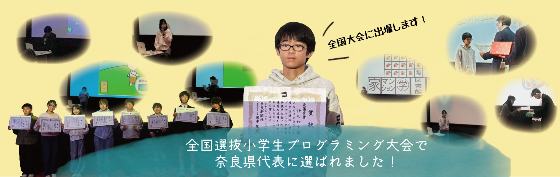 2025年12月13日お知らせcolors-academy 2025年度全国選抜小学生プログラミング大会 奈良県代表に選出されました!2025年11月24日(月・祝)に2025年度全国選抜小学生プログラミング大会奈良県大会が実施されました。 その結果、 伊田和生さんの作品【目指せ100歳!すごろく人生】 が最優秀賞となり、奈良県代表として選出されました […]